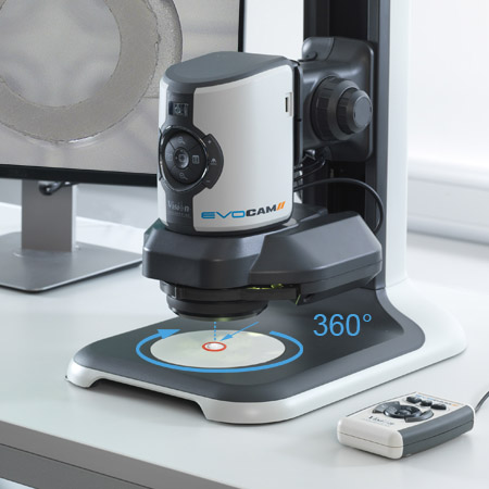 您可以在丰富的可选配件中挑选打造符合您具体要求的个性化 EVO Cam II。可以选择 360˚ 旋转观察器查看目标对象周围细节,可选择叠焦功能让较高目标物实现统一对焦,此外还有紫外线环形灯、底部照明以及一系列滤镜等选项,帮助您观测更多对象。选择浮动平台,让精度和控制更上层楼,更有丰富支架底座供您挑选,让 EVO Cam II 与您的应用场景完美契合。