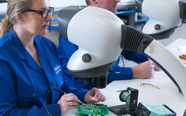 例如在精密PCB的生产,其中表面贴装技术(SMT)是制造过程的一部分。与PCB板连接的组件完整性对该零件功能可靠性至关重要。在使用镊子和焊接设备时,要检查这些微型部件并修复任何错误的连接,需要特别的灵活性,这在使用无目镜的3D光学系统时得到了显著的改善。